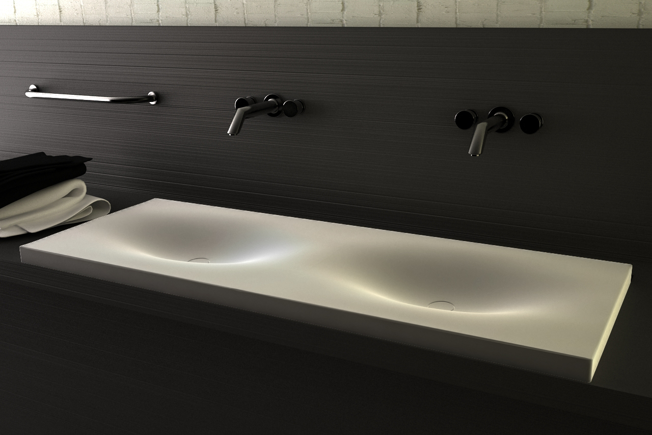 Encimeras de Corian fabricadas a medida con dos lavabos,
